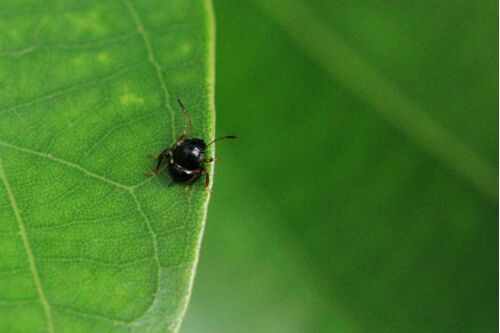 降り続いた雨が上がり明るい陽射しが戻ってくると途端に真夏日だ、老躯には厳しい日になる。 風が通り抜ける玄関先のシロダモの木に、これまで見たことのない極小の甲虫の仲間がいるのを見つける。 先日手に入れた「ハムシ・ハンドブック」を見ていなければ…